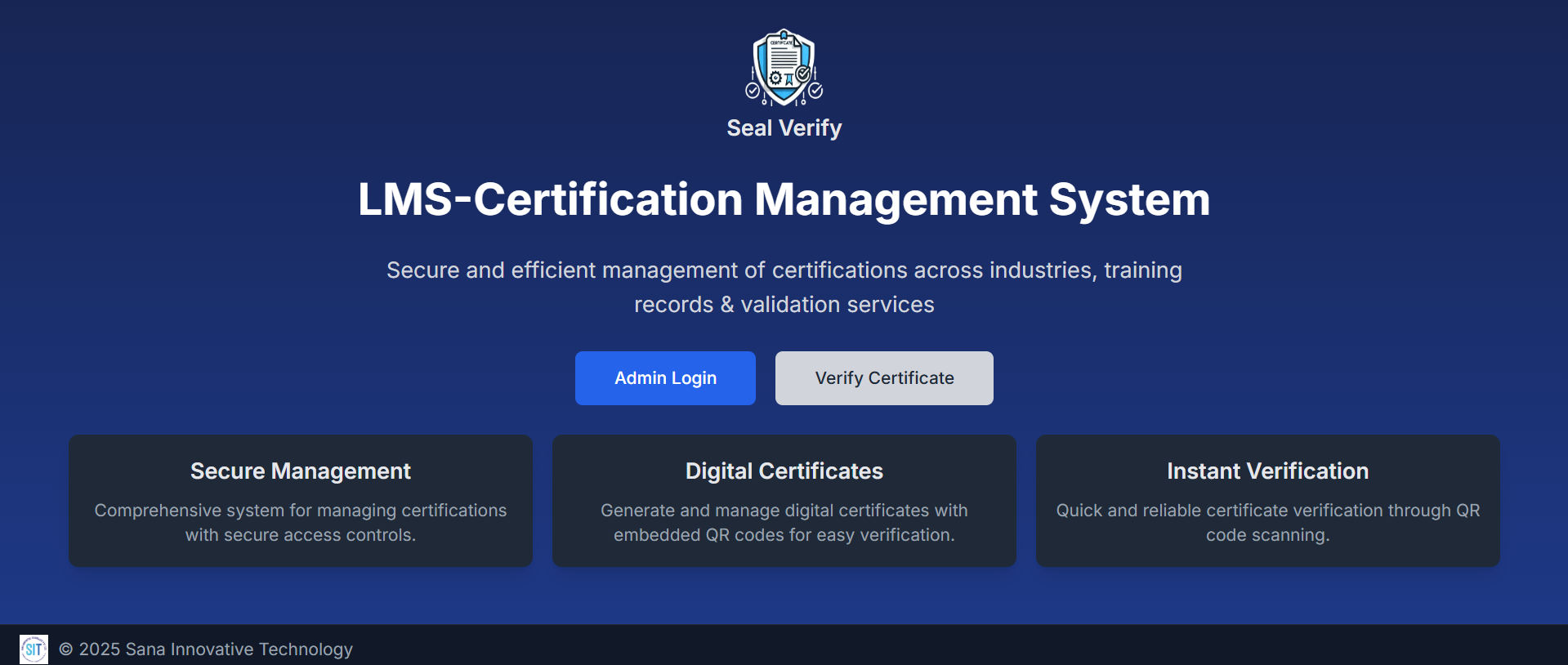Welcome to LMS-Certification Management System, your trusted platform for managing and verifying professional certifications seamlessly. Our system is designed to streamline the process of issuing, storing, and verifying digital certificates, ensuring authenticity and security for educational institutions, training centers, and businesses.